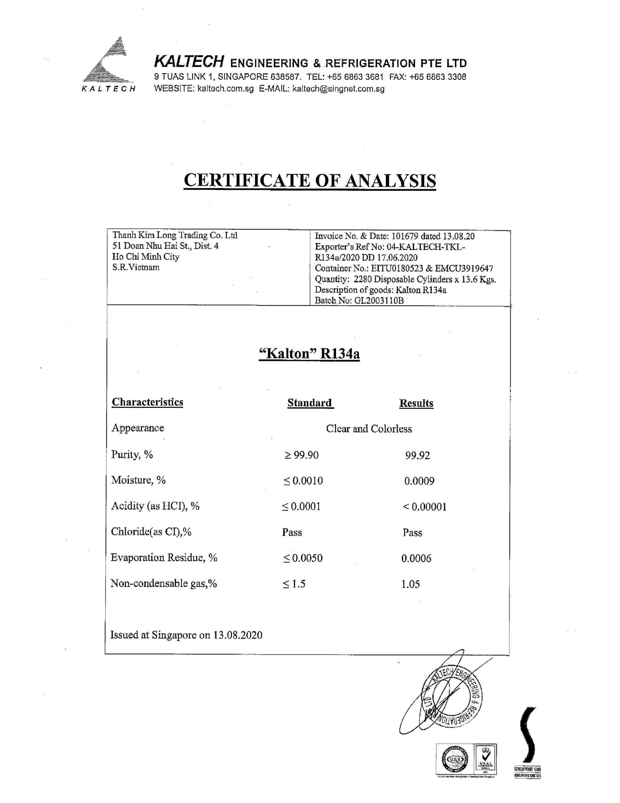 Gas Lạnh Kalton R134A (13.6 kg)