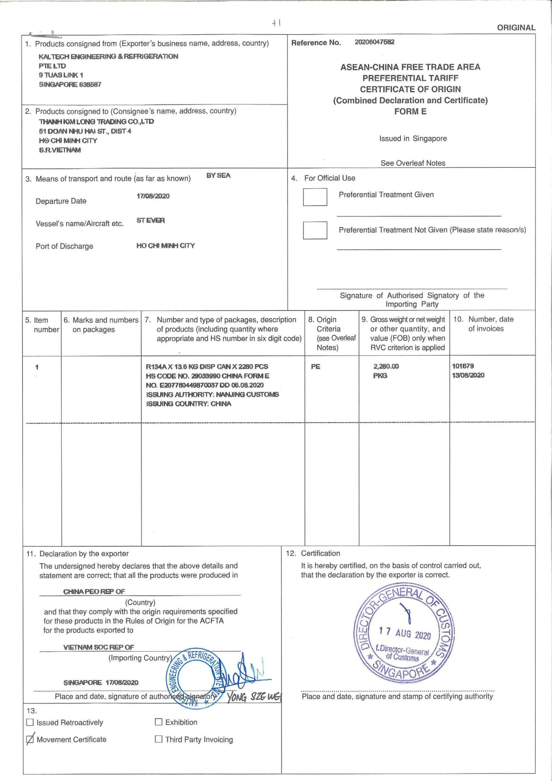 • Thành phần:1,1,1,2 -TETRAFLUOROETHANE
